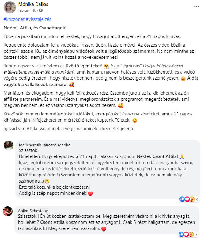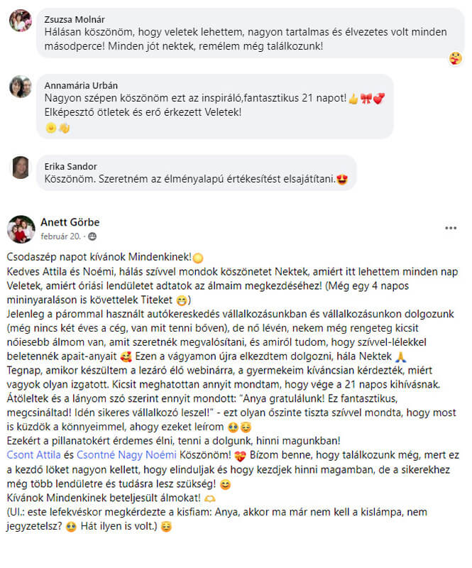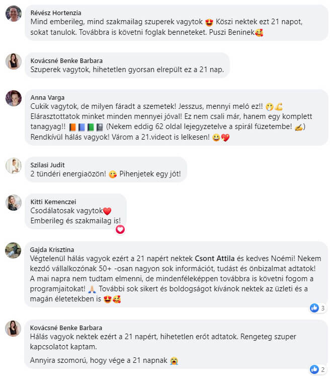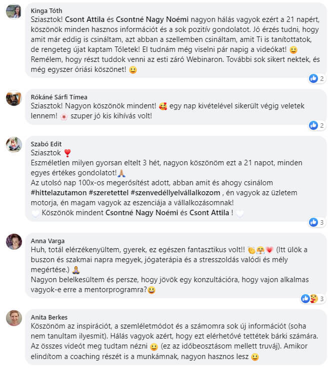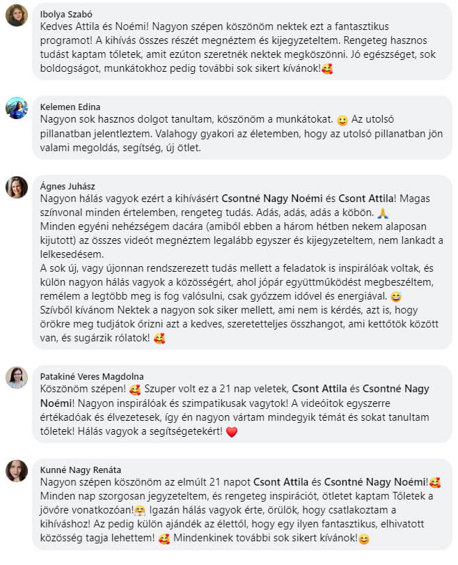 Részese lehetsz egy szuper Facebook közösségnek, akikkel kapcsolatba kerülhetsz és együtt vehettek részt a 21 napos programunkon.