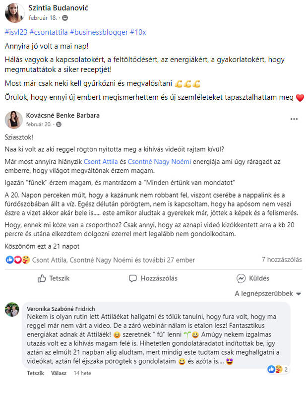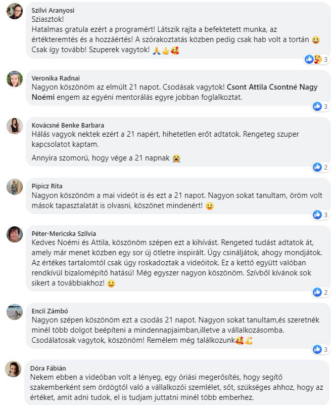 Ebben a 21 napos programban minden egyes nap meg fogunk Veled osztani egy kulcs készséget, vagy vállalkozói gondolatot, amit ha megfogadsz, akkor a 21 nap végére érezni fogod, hogy a fejlődés útjára léptél.